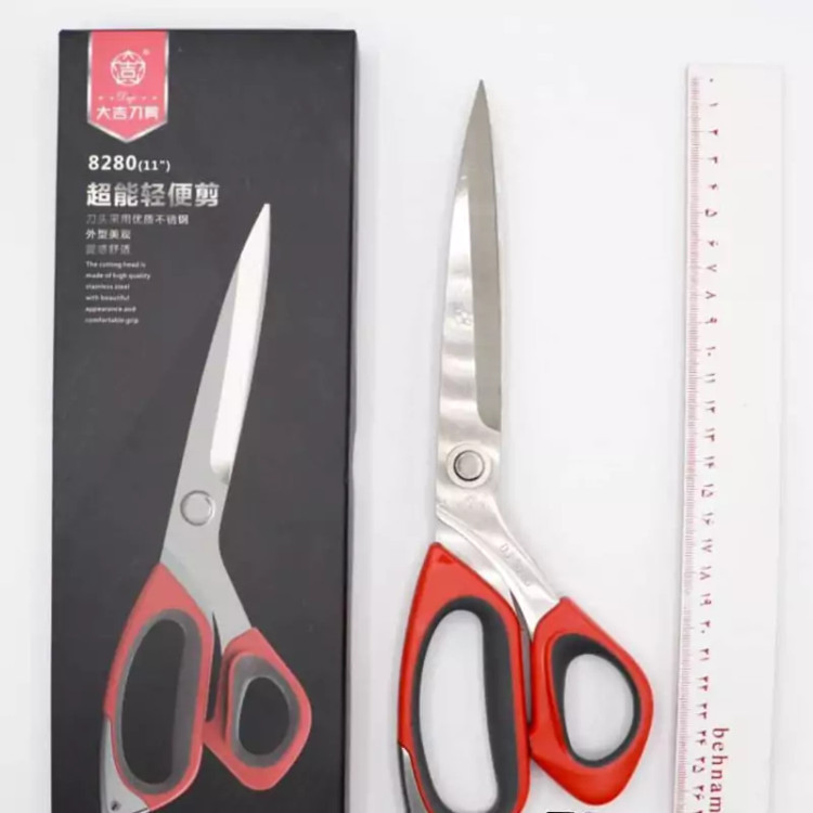 قیچی dj8240 تیغه فولادی کیفیت تضمینی دسته پلاستیکی دارای محافظ فلزی به راحتی چن لایه پارچه را برش میدهد