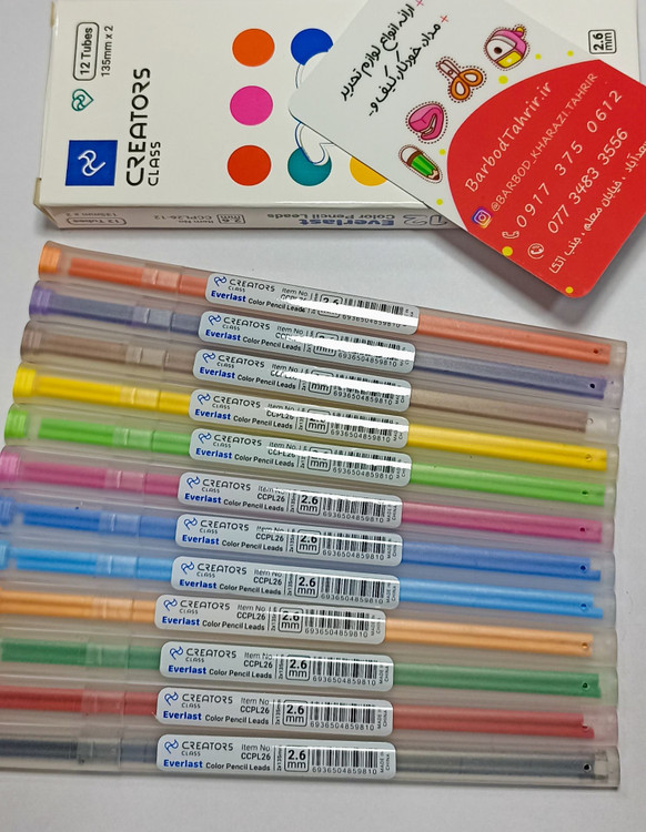 مغز ی یدک مداد رنگی اتودی سی کلاس با ضخامت 2/6 میلی متر وتعداد 12 عدد در هر بسته مناسب برای طراحی نقاشی ورنگ امیزی.دارای رنگ دهی نرم وروان و مقاوم در برابرشکستگی...بسته بندیهای محصول دارای جعبه پبسیار نرم