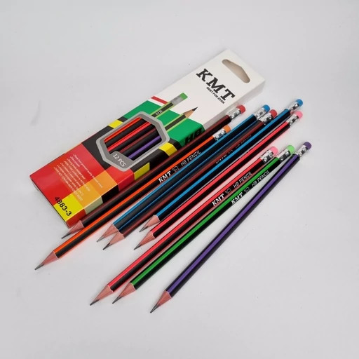 مداد مشکی پاک کن دار KMT با کیفیت HB با مغزی نرم با تعداد12 عدد در هر بسته