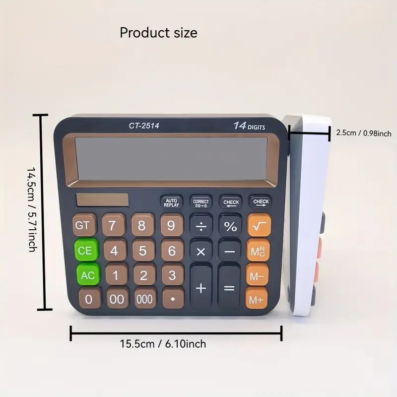 ماشین حساب ۱۴ رقمی پیشرفته: این ماشین حساب که برای انجام محاسبات بزرگ ایدهآل است، برای متخصصان کسب و کار، کارگران، معلمان، دانشآموزان یا هر کسی که به نتایج سریع و دقیق نیاز دارد، ایدهآل است.