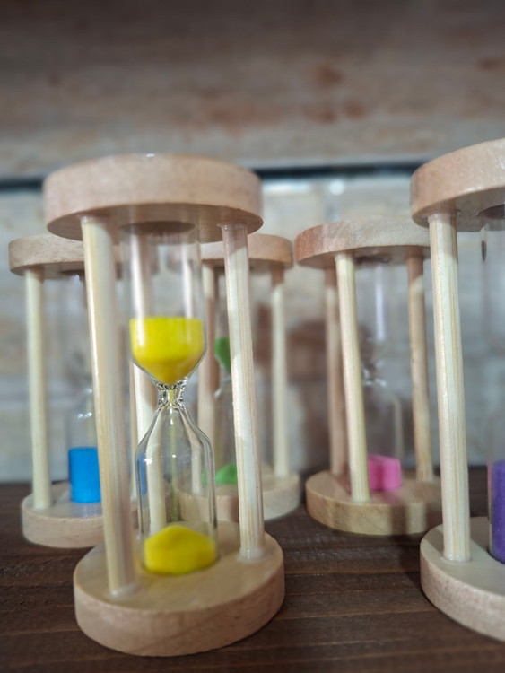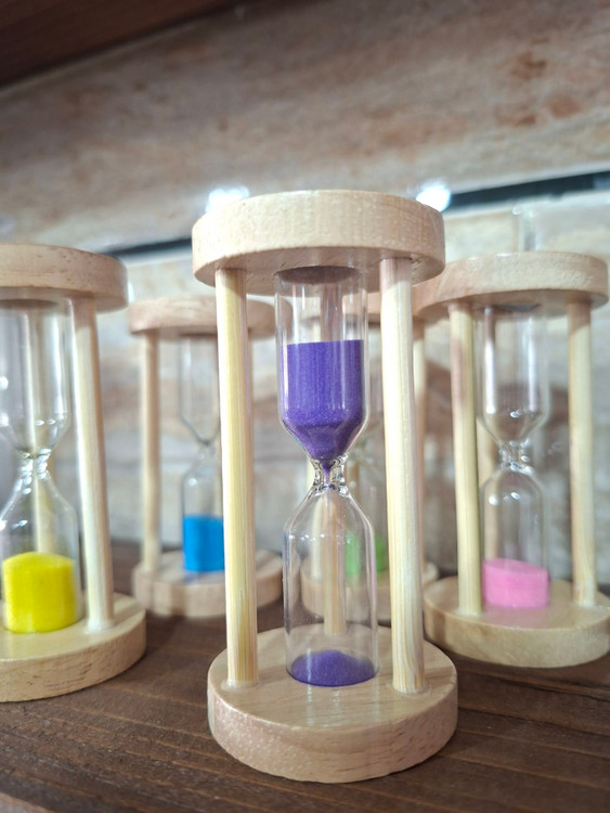ساعت شنی کپسولی با زمان بندی 1دقیقه ای و 5 دقیقه ای با بدنه چوب و حباب شیشه ای مناسب برای روی میز و دکوراتیو محل کار