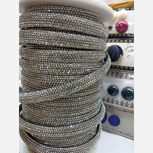 سوارسکی لوله ای زمینه مشکی نگین نقره ای با عرض 10 میلی متر مناسب برای تزئین انواع لباس. پاپیون.کیف وکفش