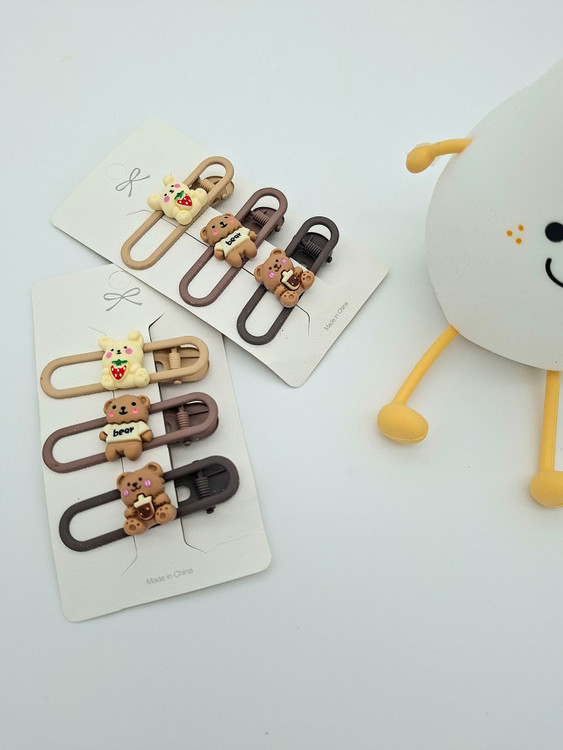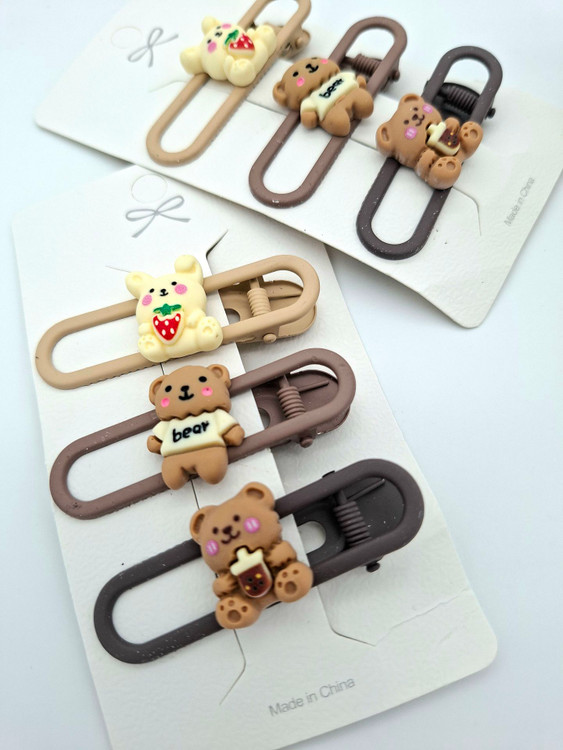 گیره مو انبری 3 تایی کیوت ما با طرح های خرس و خرگوش