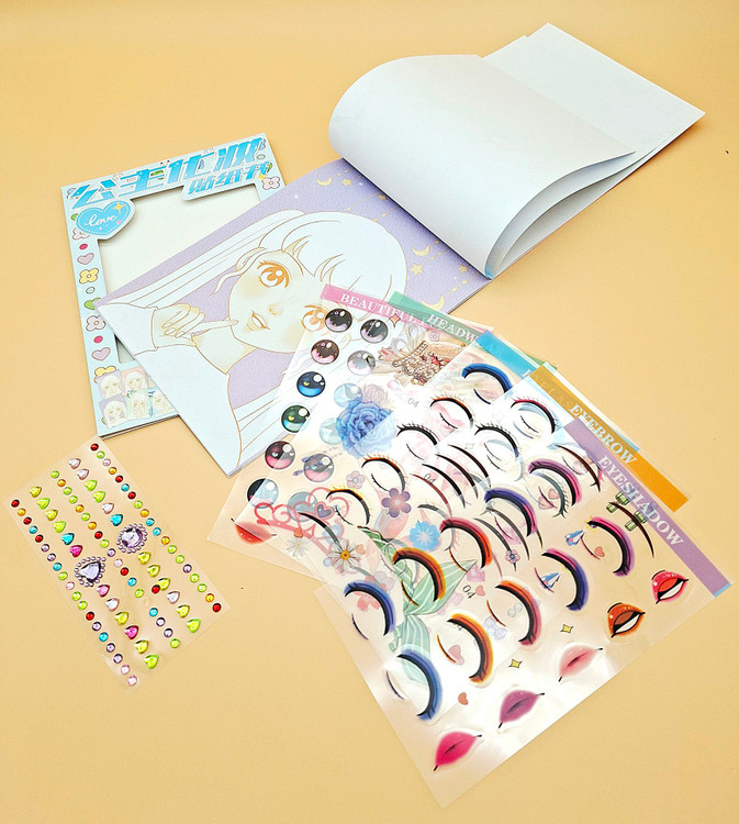 همراه با ورقهای شفاف استیکر آرایشی (ابرو، مژه، خط چشم، سایه، رژلب، گونه و ...)