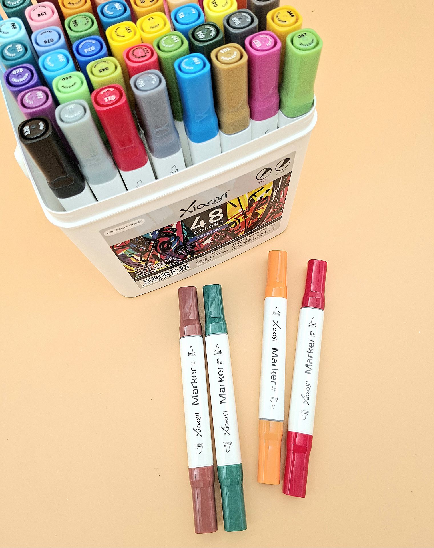 ماژیک راندو برند ژیائویی 48 رنگ دارای سری تخت وبراش بسیار با کیفیت وبا ماندگاری بالا در جعبه های طلقی با استند نگهدارنده